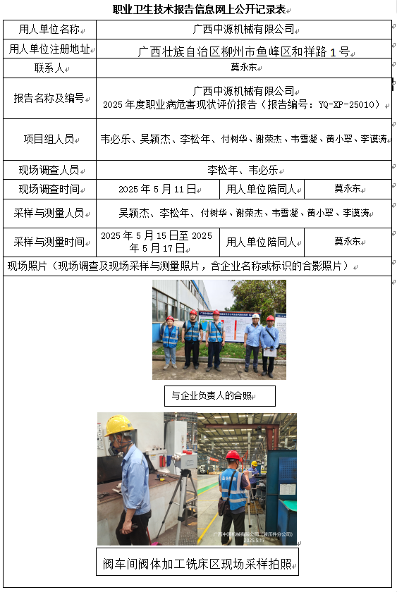 廣西中源機(jī)械有限公司2025年度職業(yè)病危害現(xiàn)狀評價報告