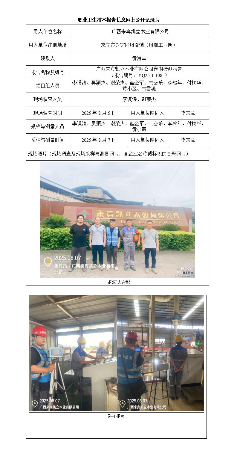 廣西來賓凱立木業(yè)有限公司定期檢測